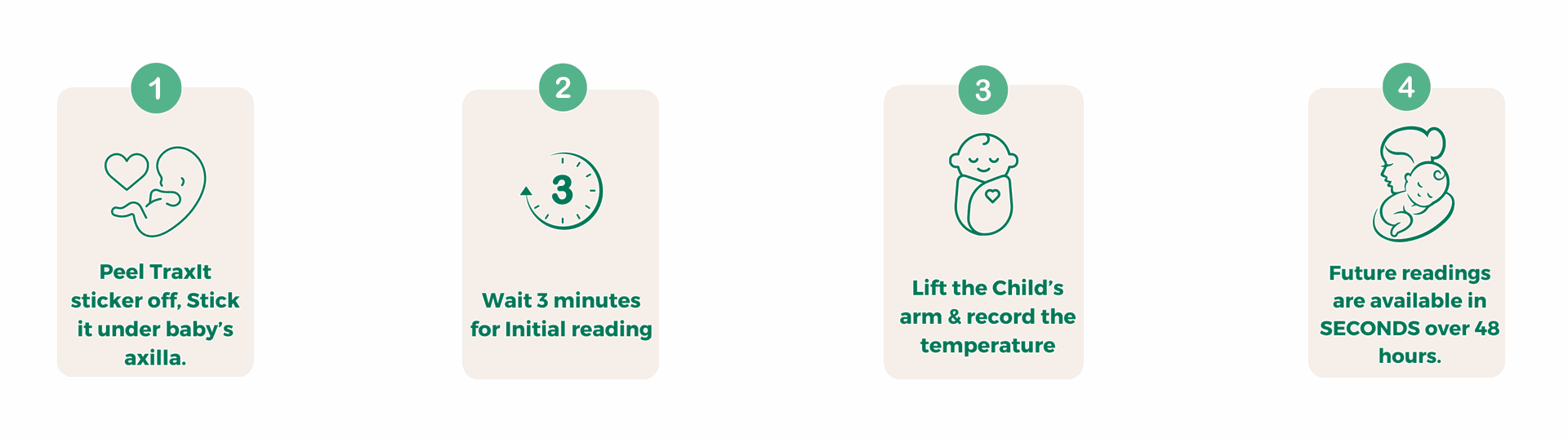 • TraxIt is a wearable axillary thermometer patch which allows easy and continuous monitoring for 48 hours.