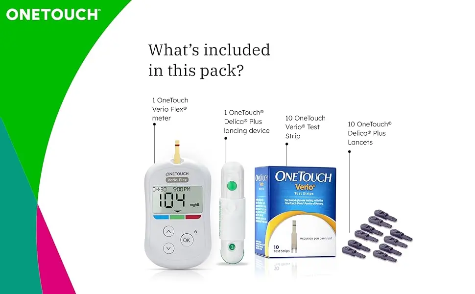 - Simple and so much more: OneTouch Verio Flex® Glucometer is simple to use, easy to understand, accurate and offers virtually pain free testing. This blood sugar test machine seamlessly syncs your glucose readings with the OneTouch Reveal mobile app.